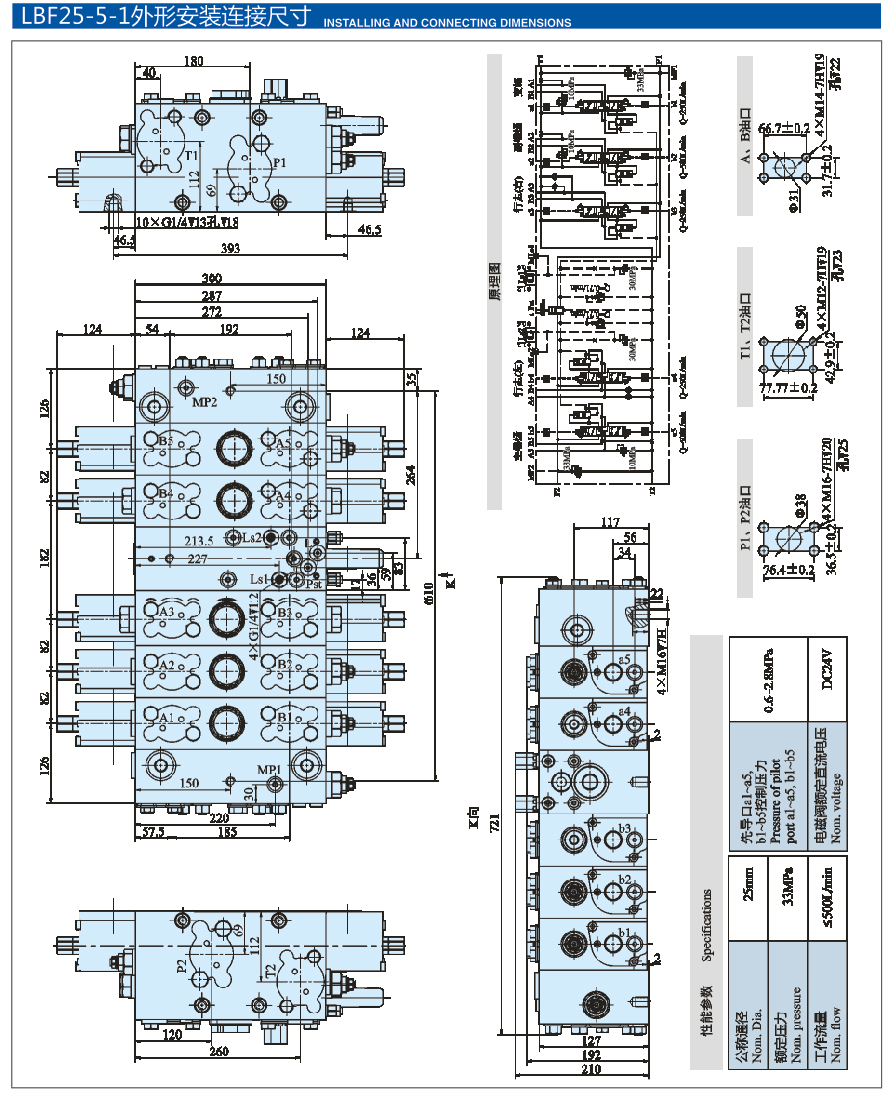 本系列多路阀现有LBF14、LBF22、LBF25三种规格。
